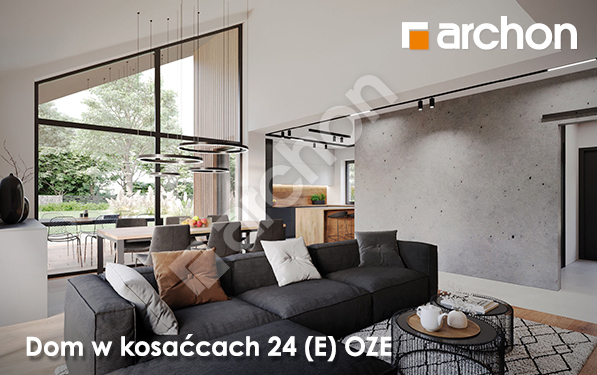 "Dom w kosaćcach 24 (E) OZE" - energooszczędna parterówka z efektownym przeszkleniem w części dziennej