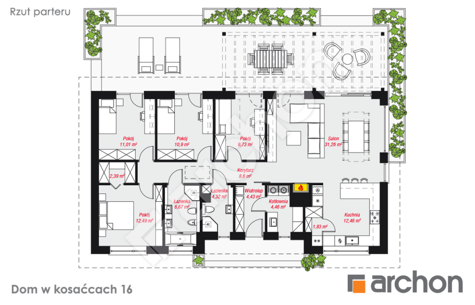 Więcej szczegółów oraz inne inspirujące projekty domów dostępne są na stronie www.archon.pl.