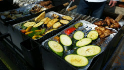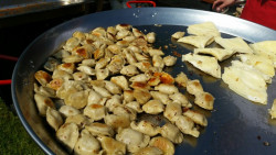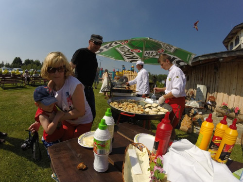 Czyli dla każdego, coś dobrego :) Mięsożercy, czy to wegetarianie nie mogli narzekać na menu. Na rusztach prażyły się warzywa oraz przeróżne mięsa. Wśród ciepłych dań znalazły się także przepyszne pierogi i naleśniki. Dodatkiem były tradycyjne ciasta.