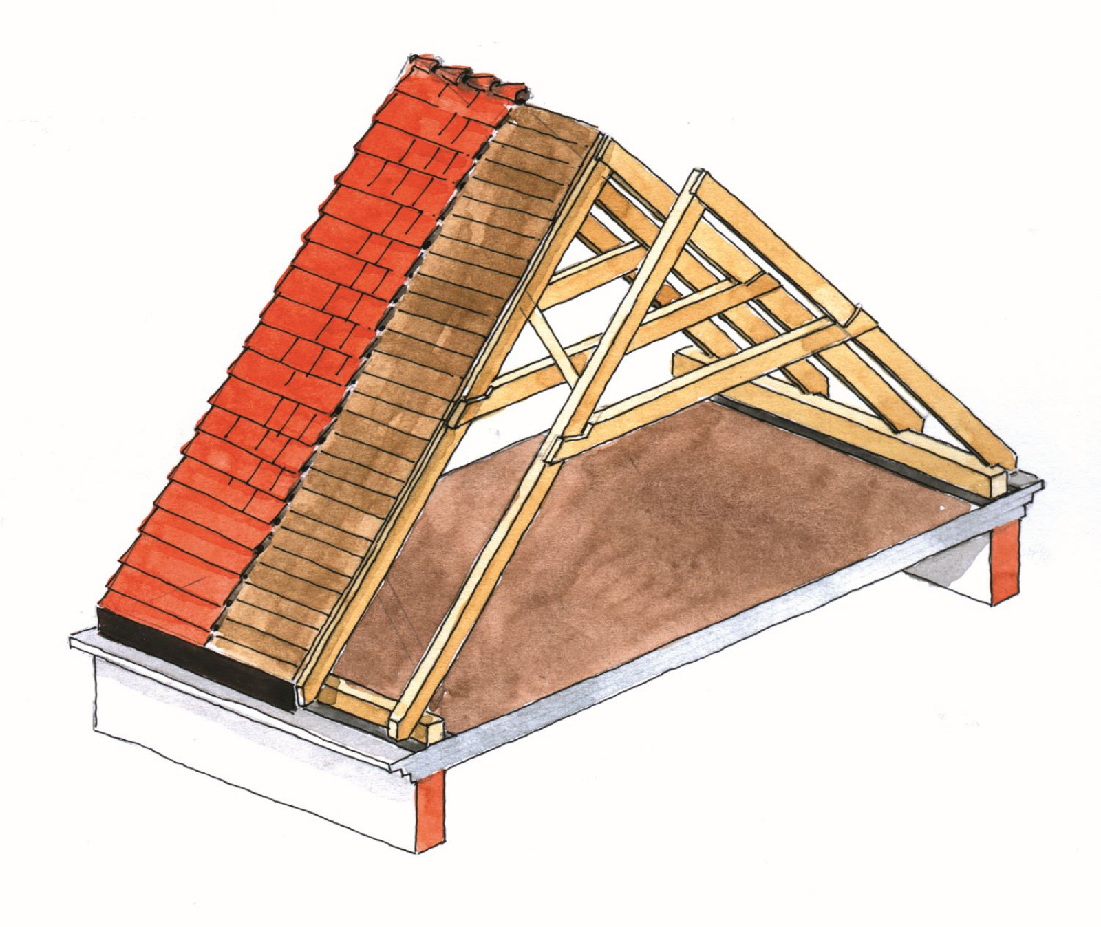 W dachu o konstrukcji krokwiowo-jętkowej nie ma żadnych słupów ani innych podpór w środku poddasza. Znakomicie ułatwia to adaptację poddasza na pomieszczenia mieszkalne, rys. redakcja