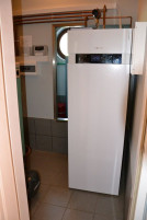 Modernizacja systemu ogrzewania polegała na wykonaniu 4 odwiertów o głębokości 50 m i zamontowaniu pompy ciepła. Pozostawiono kocioł na olej opałowy oraz zbiornik na olej i używa się ich tylko podczas najniższych temperatur. Wszystkie urządzenia zmieściła kotłownia o powierzchni 8,90 m2