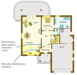 Niepotrzebnie zlikwidowaliśmy spiżarnię w kuchni. Mimo dużej ilości szafek, potrzebujemy więcej miejsca na produkty spożywcze i sprzęt. Praktyka użytkowania domu pokazała, że sypialnie na poddaszu są za duże, i że lepiej byłoby wykroić ich kosztem brakującą garderobę. Nieogrzewany strych nad garażem i kotłownią nie nadaje się do przechowywania niektórych rzeczy. Mankamentem domu jest ciemne i duszne W.C. na parterze. Brakuje mu okna. Kiedy działa ogrzewanie podłogowe, jest tam za gorąco.