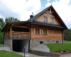 Dom drewniany, parterowy z użytkowym poddaszem i piwnicą; ściany z bali sosnowych i płyt Spano, między nimi folie (wiatroi paroizolacyjna) oraz ocieplenie z wełny mineralnej o grubości 10 cm; dach pokryty dachówką ceramiczną w kolorze antracytu. Powierzchnia działki 6000 m2. Powierzchnia domu 284 m2. Powierzchnia wiaty pod tarasem 27 m2. Roczne koszty utrzymania domu 16 072 zł.