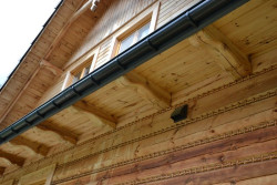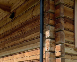 Ściany wzniesiono z bali sosnowych, a nie ze świerkowych, jak na południu Polski. Właściciele wybrali je ze względu na większą żywiczność i twardość. Nie przeszkadza im, że drewno żółknie i ciemnieje. Między balami mechooptycy starannie ubili ozdobne warkocze, wyplecione z drewnianych pakułów