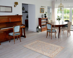 Urządzenie wnętrz zaprojektowała Magda. Zastosowała kolorystykę dającą efekt przestronności i świeżości. Klasyczne meble połączyła z nowoczesnymi. Różowa kanapa nadaje wnętrzu polotu. Naturalne tło dla mebli tworzą pastelowe ściany z tapetami oraz posadzki z bielonego dębu