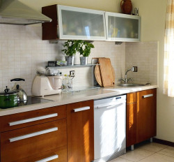 Kuchnia, jako ostatnie pomieszczenie w budynku, czeka na modernizację. Właścicielom brakuje przede wszystkim dłuższego blatu roboczego (z kompozytu), który zamontują pod oknem. Tymczasowo na ścianach ułożyli tylko płytki ceramiczne. Żałują, że kuchnia nie jest o 5 m2 większa (ma 10 m2)