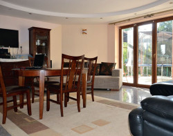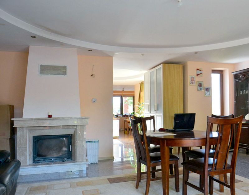 Wnętrza ozdabiają efektowne sufity z oświetleniem LED-owym. Tynki wykonano maszynowo z gipsu, a potem pomalowano farbami w ciepłych kolorach. Na parterze podłogi wykończono polerowanymi płytami granitu oraz trawertynu. Z takimi posadzkami połączone wnętrza są, niestety, akustyczne