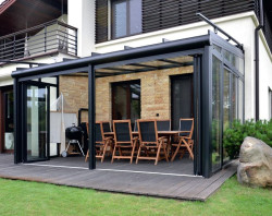 Dwa lata po przeprowadzce, strefa wypoczynkowa domu i ogrodu wzbogaciła się o ogród zimowy o powierzchni 19 m2. Zbudowano go przy jadalni, przy północno-wschodniej elewacji. Pomieszczenie z aluminium i szkła, ze składanymi drzwiami od strony ogrodu, ogrzewa się piecem nadmuchowym na pellety