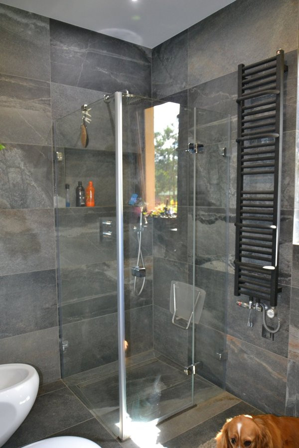 Na początku, kiedy monter zapytał, czy chcemy wykorzystywać pompę do chłodzenia pomieszczeń, zignorowaliśmy temat. Teraz już wiemy, że chłodzenie przyda się w piwniczce i głównej sypialni na niekiedy gorącym poddaszu. Żałujemy, że tego nie zrobiliśmy w trakcie budowy. Na parterze, czyli tam gdzie przebywają nasze zwierzaki i przyjmujemy gości, celowo założyliśmy ogrzewanie podłogowe i gres. Na poddaszu chcieliśmy mieć podłogi ze szczotkowanych desek dębowych, dlatego tam mamy tylko grzejniki na ścianach.