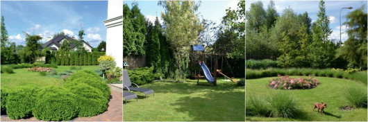 Wybrana parcela ma lepszy układ odnośnie stron świata. Pozwolił nam na skierowanie głównej strefy wypoczynkowej za domem na południowy zachód. Zażywamy słońca do wieczora! Było to dla mnie ważne, bo wcześniej mieszkałam na terenie zacienionym przez starodrzew. Nasza jest nasłoneczniona i na początku musiałam się do tego przyzwyczaić, podobnie jak do wiatrów, pędzących przez pola. Wiatry są niekiedy tak silne, że ugięły posadzony przez nas żywopłot - rośnie ukośnie! Na szczęście, roślinne parawany już chronią nas od nadmiernego przewiewu.