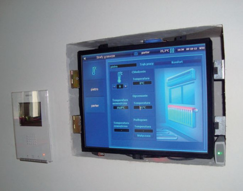 Sterowaniu służą przyciski wieloklawiszowe, pilot LCD oraz panele. Dotykowy panel z oprogramowaniem xVision umieszczony jest w centralnym miejscu głównego korytarza. Ma podłączony Internet i podgląd z kamer. Prawie wszystkie łączniki działają jako przyciski, co jest bardzo wygodne. Za pomocą jednego pilota steruję oświetleniem i roletami. Możliwe jest także pobranie odpowiedniej aplikacji i sterowanie systemem przez telefon.