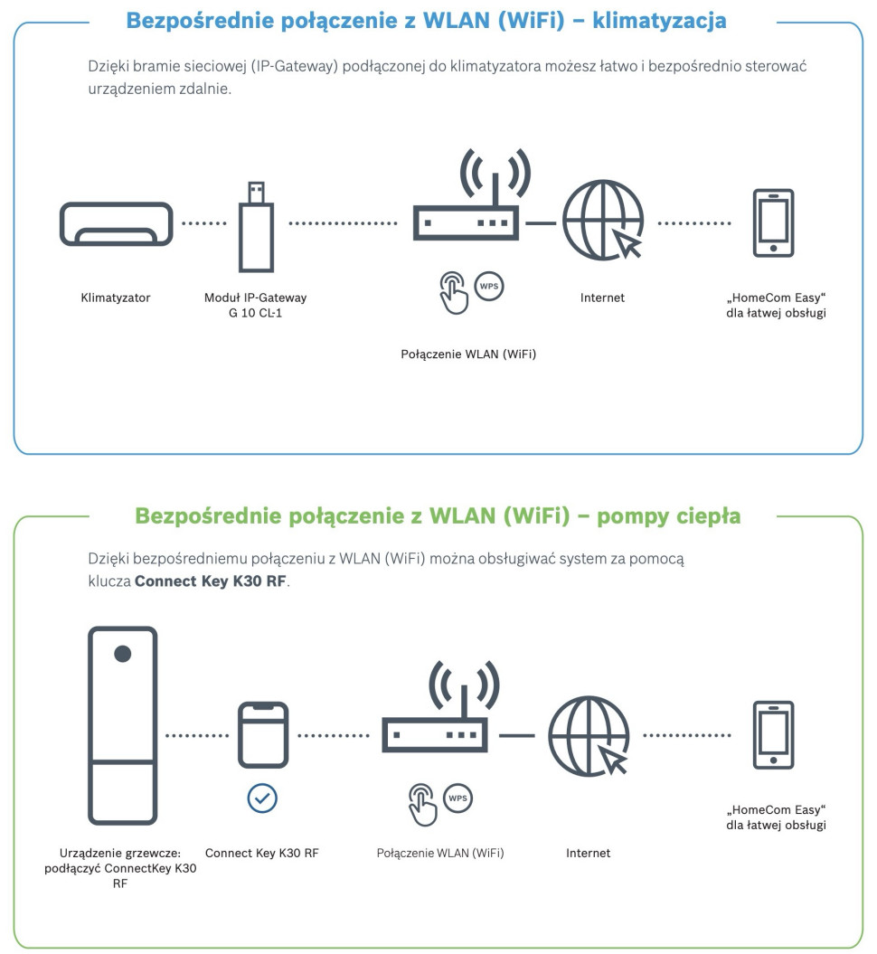 Brama sieciowa IP-Gateway umożliwia kontrolowanie klimatyzatora i zmiękczacza, zaś bezpośrednie połączenie z WLAN (WiFi) umożliwia zdalną obsługę pompy ciepła i kotła (za pomocą klucza Connect Key K30RF/K40RF). Dzięki identyfikatorowi SingleKey ID mamy dostęp do wszystkich urządzeń w systemie. Aby chronić swoje dane, klienci mogą wprowadzić też indywidualne ustawienia prywatności, co jest kolejnym zabezpieczeniem.