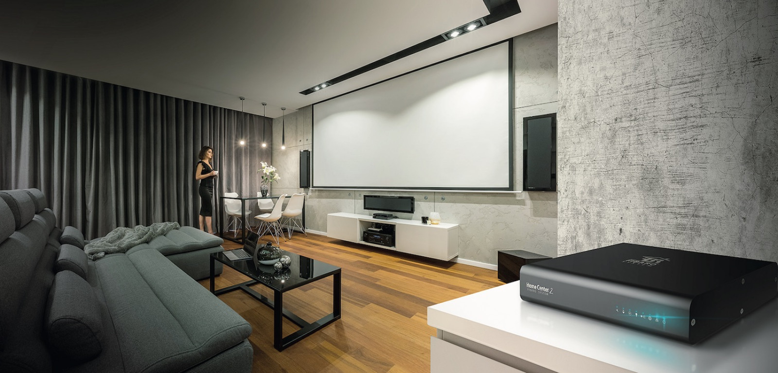 Dlatego w smart domu punkty świetlne grupuje się, aranżując tzw. sceny. Każda scena to inna ich konfiguracja. Do różnych aktywności potrzebne jest bowiem odmienne oświetlenie. Np. uruchomienie sceny „gotowanie” spowoduje włączenie głównej lampy w kuchni i halogenów oświetlających blaty robocze, scena „romantyczna kolacja” będzie oznaczała zapalenie lampy nad stołem i dekoracyjnej iluminacji wybranych punktów w salonie. W scenie „oglądanie telewizji” załączone będzie tylko przygaszone światło obok telewizora, a do sceny „sprzątanie” włączy się pełne oświetlenie główne.