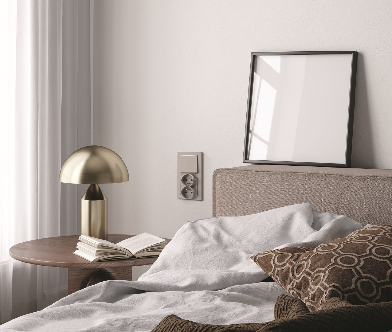 Rozplanowanie osprzętu jest bardzo istotne. W sypialni przy łóżku przyda się np. łącznik oświetleniowy, roletowy czy gniazdo wtykowe, fot. OSPEL