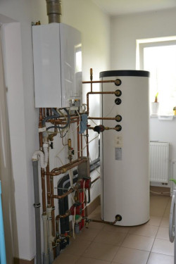 Kotłownia mieści zasobnik c.w.u. o pojemności 300 l i kondensacyjny kocioł gazowy