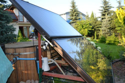 W 2012 r. założyłem na dachu 3 kolejne zestawy rur próżniowych, które mają za zadanie wspomagać również system grzewczy w budynku. Zależało mi na tym efekcie szczególnie w tzw. okresach przejściowych, czyli wczesnowiosennym i późnojesiennym. Idąc za ciosem, w ogrodzie postawiłem obrotowy stojak i umieściłem na nim dwa kolektory płaskie, które od kwietnia 2013 r. wykorzystuję do podgrzania wody w drewnianej balii z hydromasażem. Jesteśmy z żoną bardzo zadowoleni z obecnej, powiększonej instalacji, bo za darmo daje nam przez kilka miesięcy komfortowo ciepłą wodę w domu i w balii w ogrodzie. Poza tym wspomaga system c.o.