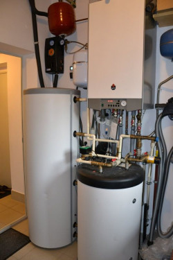 Do istniejącej instalacji grzewczej z kotłem na gaz z sieci i stojącym zasobnikiem c.w.u. 100 l dołączono instalację solarną z zasobnikiem z jedną wężownicą o poj. 220 l