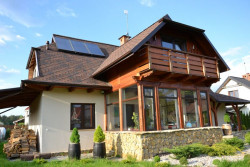 Instalacja solarna: 3 kolektory płaskie; powierzchnia 3 x 1,818 m2; nachylenie 44°; wystawa południowo-zachodnia; ciecz – roztwór glikolu propylenowego; długość instalacji 2 x 14 m; biwalentny zasobnik c.w.u. o poj. 300 l.