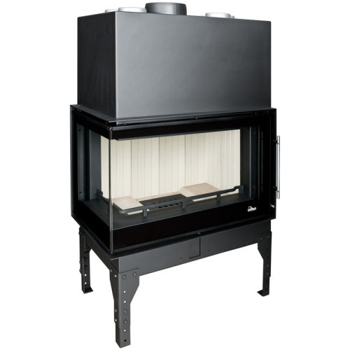 Blaszany dystrybutor gorącego powietrza ułatwia przyłączenie wkładu do systemu kanałów rozprowadzających ciepłe powietrze. Pojemny popielnik, żeliwny ruszt oraz sprawnie działający system nadmuchu powietrza na szybę sprawiają, że eksploatacja i konserwacja kominka są łatwe i nie zajmują dużo czasu.