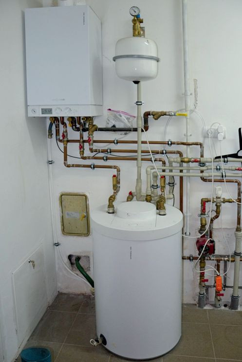 W kotłowni o powierzchni 7,3 m2 umieszczono kocioł gazowy i zasobnik c.w.u. o pojemności 120 l