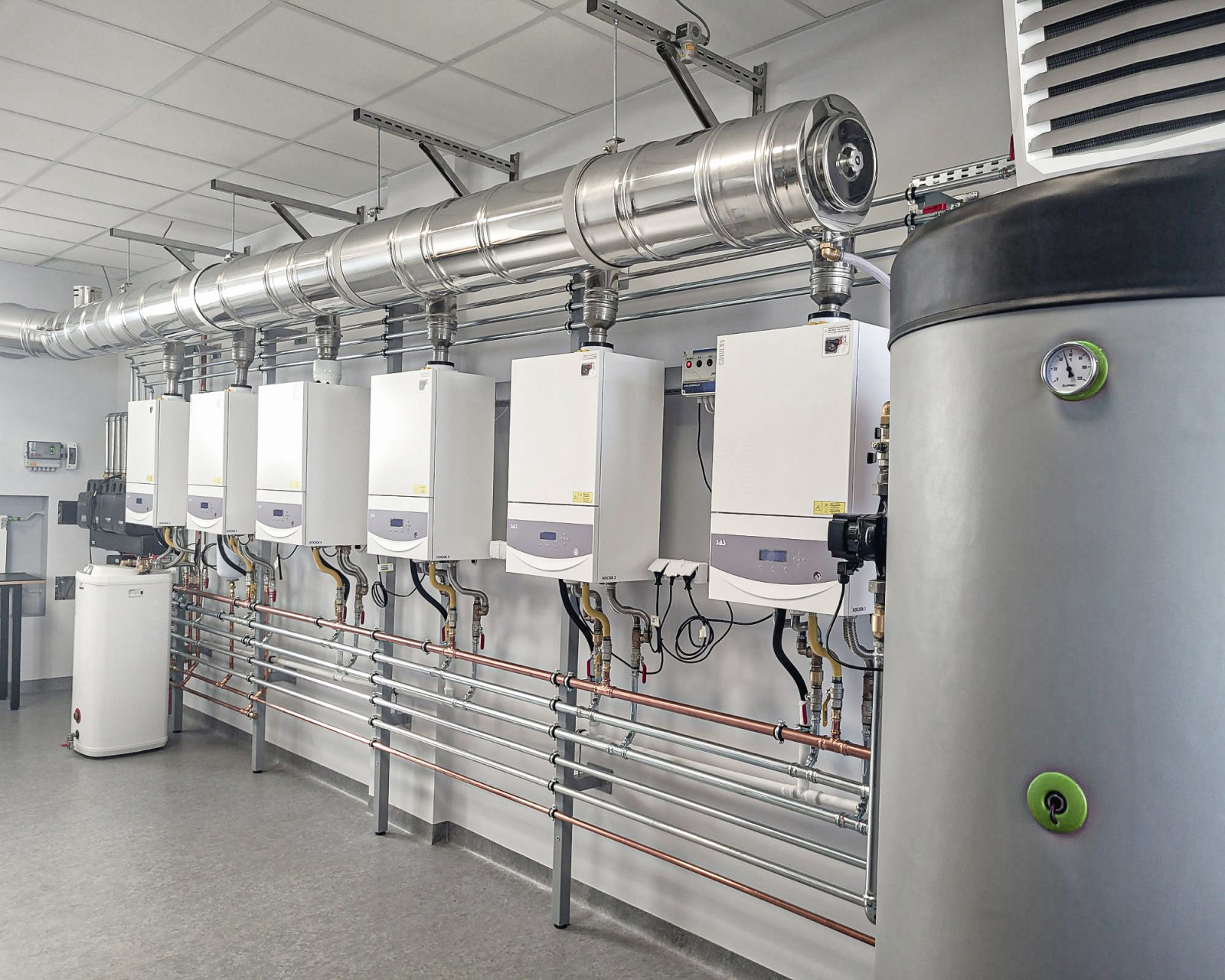 Poza standardowymi mocami kotłów 19 i 24 kW w ofercie przygotowano także kotły o mocach 30 i 42 kW z przeznaczeniem dla budynków o wyższym zapotrzebowaniu energetycznym. Przy montażu kilku jednostek w kaskadzie możemy zabezpieczyć ogrzewanie i przygotowanie CWU dla budynku o większej kubaturze w sektorze usługowym czy publicznym.