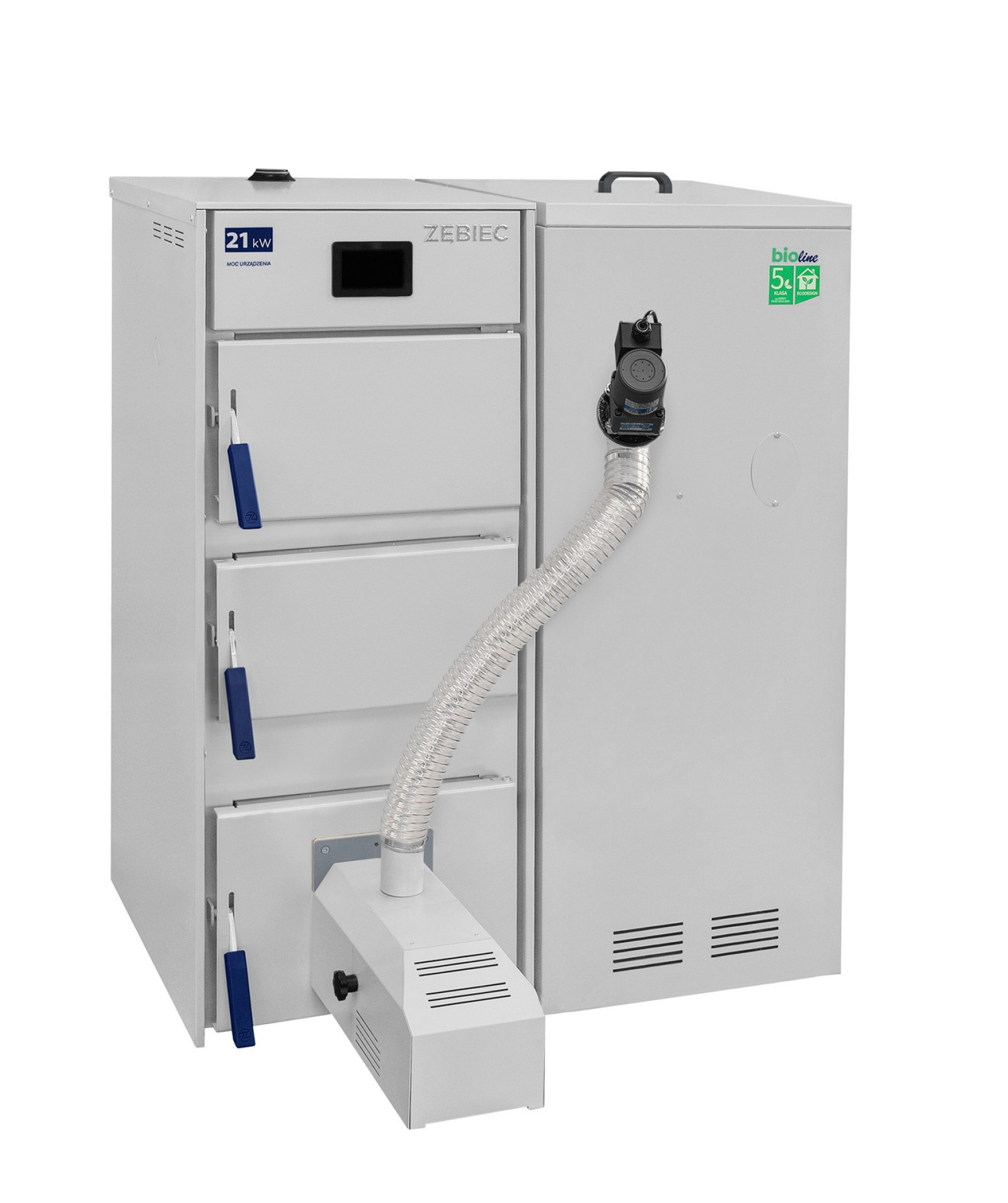 Dzięki wbudowanemu zasobnikowi i kompaktowej bryle sprawdza się również w mniejszych kotłowniach.