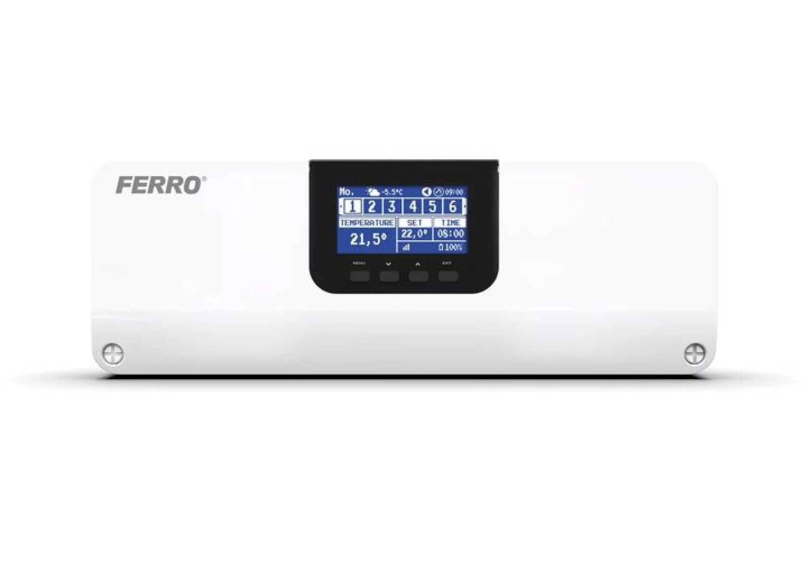 Nowoczesne systemy sterowania ogrzewaniem podłogowym sprawiają, że są one praktycznie bezobsługowe. Pozwalają na ustawienie komfortowej dla użytkownika temperatury w każdym pomieszczeniu oraz na jej planowe obniżenie, gdy mieszkańcy są poza domem. Urządzenia sterujące FERRO, dzięki inteligentnym algorytmom i harmonogramom, pozwalają zmniejszyć zużycie energii, a jednocześnie mieszkać komfortowo. Poszczególne modele mają różne funkcje i zadania, dlatego dopasowuje się je do potrzeb. Wszystkie są łatwe w obsłudze.