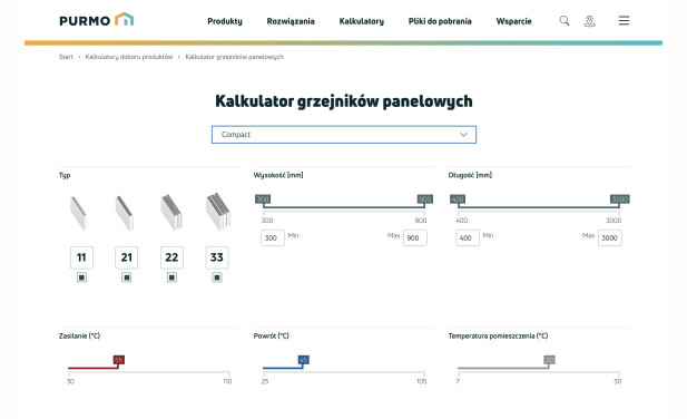 Kalkulator doboru grzejników pomoże obliczyć straty ciepła pomieszczenia, a następnie dobrać do niego odpowiedni grzejnik Purmo.