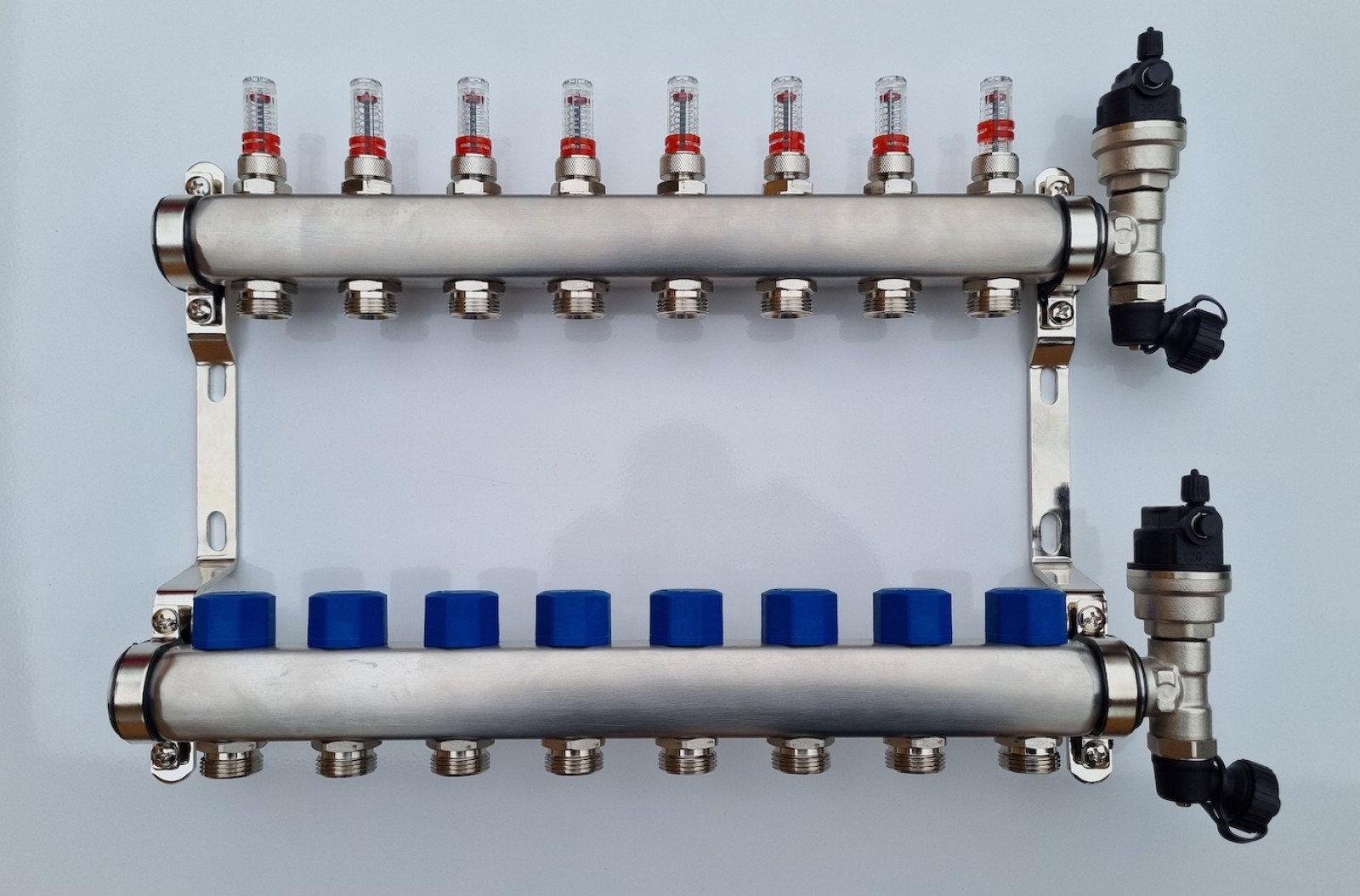 Rozdzielacz ogrzewania podłogowego to niezbędny element tego typu instalacji. Pełni on kluczową funkcję rozdzielania czynnika grzewczego na poszczególne pętle obiegowe, aby następnie dostarczyć ciepło do pomieszczeń. Dzięki rozdzielaczowi możliwe jest utrzymanie optymalnych parametrów pracy dla każdego obiegu w instalacji, fot. KUSMET
