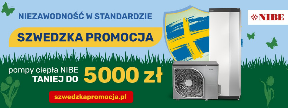 Promocja trwa od 15.03.2024 r. do 15.07.2024 r. lub do wyczerpania zapasów i przeznaczona jest dla końcowych użytkowników, którzy zarejestrują się na stronie www.szwedzkapromocja.pl i dokonają zakupu pompy ciepła za pośrednictwem wybranej firmy instalacyjnej lub dystrybutora NIBE-BIAWAR. O uzyskaniu upustu na zakup produktów promocyjnych decyduje kolejność zakupu. Szczegółowe informacje dotyczące promocji oraz aktualna ilość dostępnych pomp ciepła w obniżonej cenie zmieszczone są na www.szwedzkapromocja.pl.