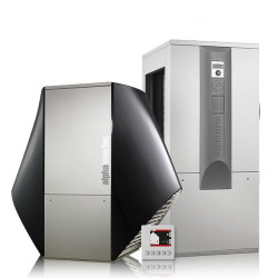 Jednostka sterująca połączona jest z pompą ciepła poprzez jej regulator Luxtronik 2.1, który znajduje się na obudowie pompy ciepła. Dzięki temu rozwiązaniu można przenieść zarządzanie wszystkimi najpotrzebniejszymi funkcjami sterownika do salonu, gdzie znajduje się centralna jednostka sterująca urządzeniem.
