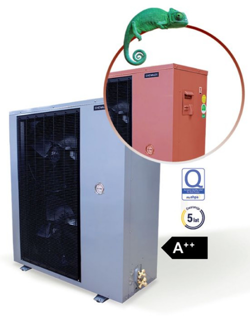 Jako nieliczna na rynku europejskim, pompa ciepła PCCO SPLIT 13kW serii KAMELEON jest oferowana od jesieni 2015 r. w opcji z dowolnie wybieranym kolorem jednostki zewnętrznej.
