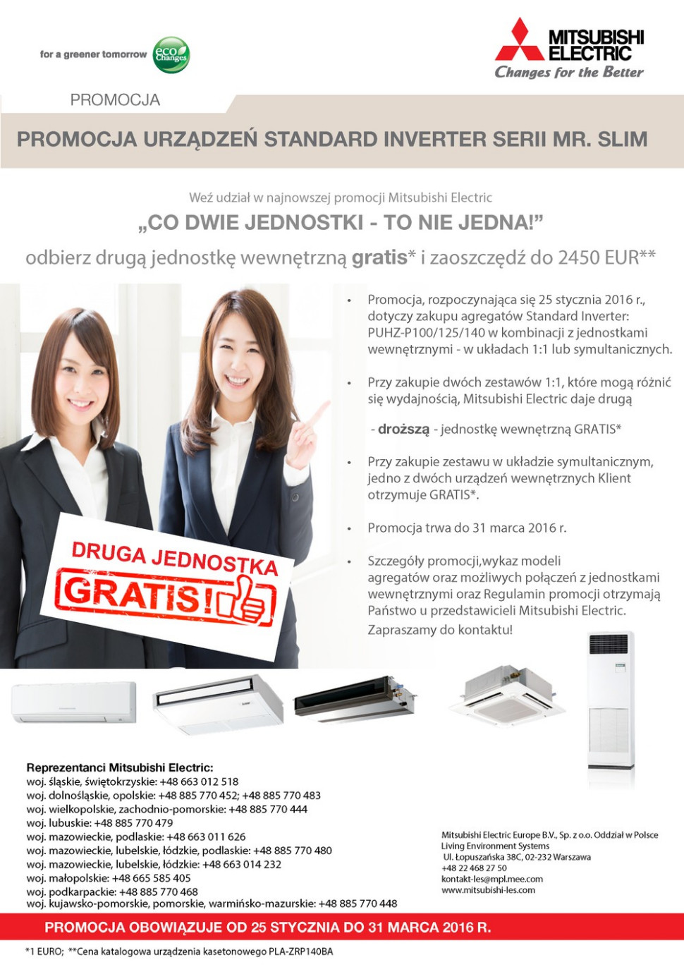 Szczegółowe informacje na temat urządzeń objętych promocją oraz regulamin promocji można uzyskać u reprezentantów Mitsubishi Electric. Kontakt do nich znajduje się na stronie http://www.mitsubishi-les.com/pl/kontakt.html.