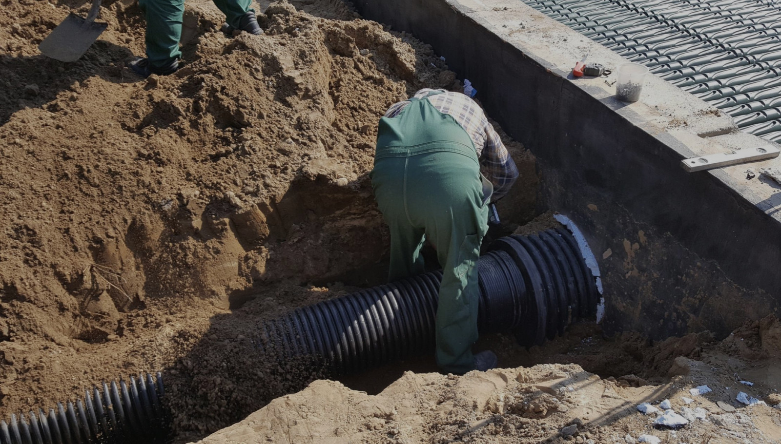 Strefy połączeń kolektorów owija się geowłókniną. Zabezpiecza ona wnętrze kanałów przed wnikaniem drobin piasku podczas zasypywania wykopu. Geowłókninę najlepiej założyć od razu po zakończeniu montażu kolektorów, zanim rozpoczną się dalsze prace przy rurach i zamknięciu wykopu.