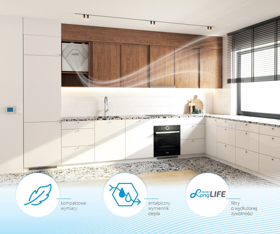 Niewielkie centrale wentylacyjne w niezwykle wydajny sposób dostarczają świeże powietrze zewnętrzne do mieszkań lub niewielkich domów o powierzchni do około 120 m².