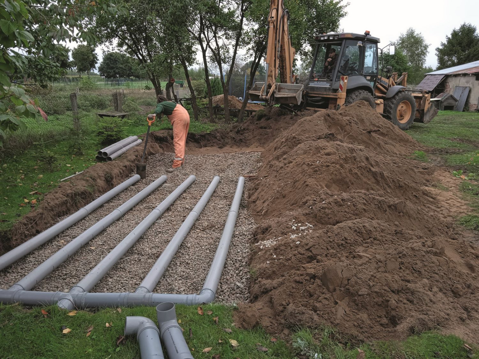 Oczyszczalnia drenażowa (ekologiczna) skutecznie oczyszcza ścieki dzięki połączeniu osadnika beztlenowego i drenażu tlenowego w gruncie. Jest prosta w eksploatacji i dobrze sprawdza się na działkach o odpowiednich warunkach gruntowych. Rozwiązanie to wiąże się jednak z koniecznością przeznaczenia większej powierzchni działki, a oczyszczona woda nie jest odzyskiwana do ponownego użycia, fot. EKO-BIO OCZYSZCZALNIE