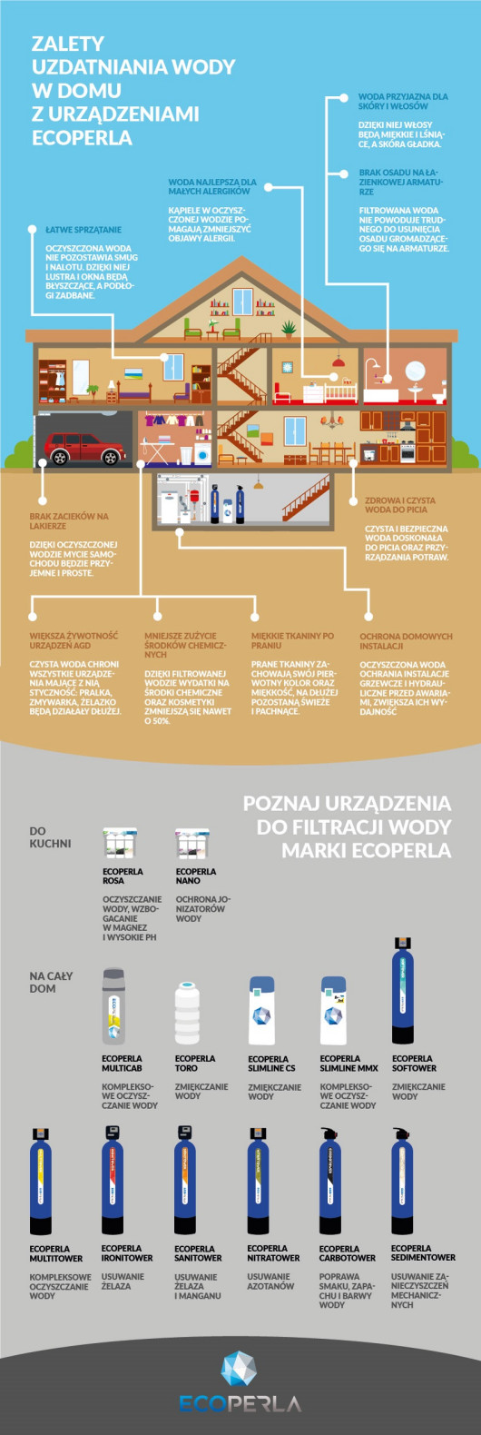 Ecoperla to marka urządzeń filtracyjnych, która powstała z myślą o uzdatnianiu wody w gospodarstwach domowych. Piękno, funkcjonalność, wydajność, innowacyjność to cechy, które najlepiej opisują te urządzenia. Wszystkie są produkowane na terenie Europy z najtrwalszych komponentów przy współpracy z największymi producentami.