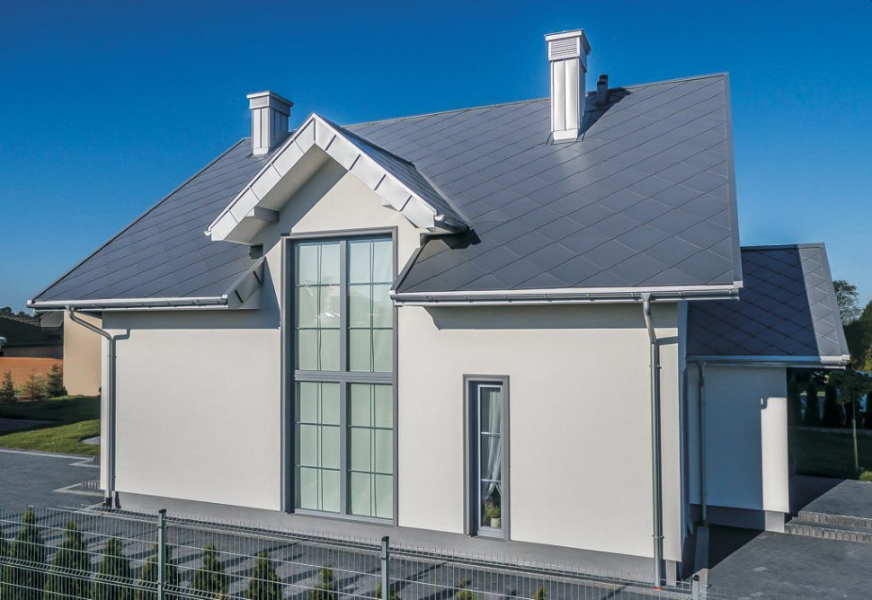 Co więcej, panele te wyróżniają się eleganckim wyglądem, który nadaje dachowi i elewacji nowoczesny i stylowy charakter. Ich niebanalny kształt karo sprawia, że budynek będzie się wyróżniał na tle innych. W połączeniu z surowym, szarym odcieniem świetnie wpisze się w minimalistyczne i loftowe style, a czerwone lub zielone panele na pewno spodobają się tym, którzy kochają otaczać się energetycznymi kolorami.