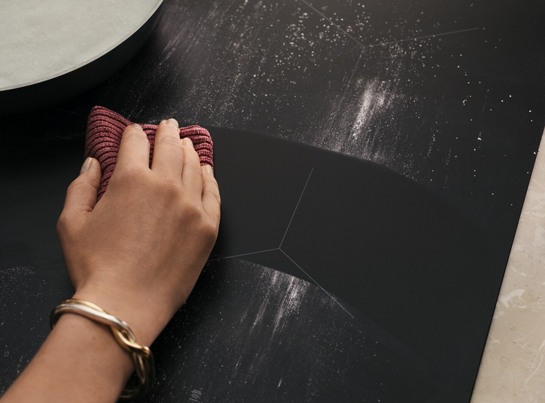 Matowe płyty indukcyjne SaphirMatt® SE urzekają elegancką, jedwabiście gładką powierzchnią, która zapewnia wyjątkowy komfort użytkowania. Połącz styl z praktycznością i ciesz się codziennym gotowaniem w kuchni, która zachwyca designem.