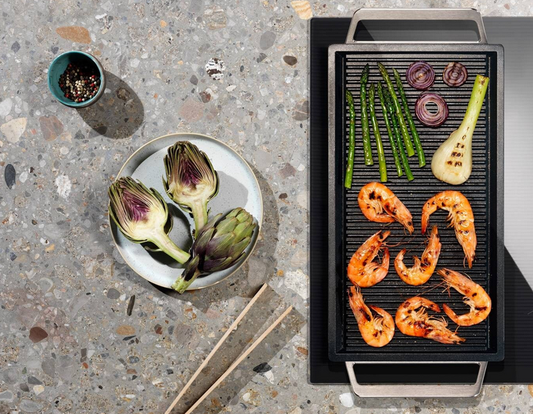 Funkcja Bridge umożliwia połączenie dwóch stref grzewczych w jedną, większą powierzchnię, idealną do gotowania w dużych garnkach, na patelniach czy grillach Plancha. Ciepło rozprowadzane jest równomiernie, co zapewnia doskonałe rezultaty i pełną kontrolę nad procesem gotowania. To praktyczne rozwiązanie, które zwiększa wygodę i elastyczność w każdej kuchni.