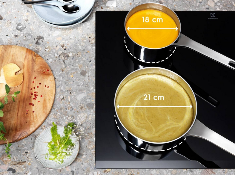 Strefy grzejne Infinite* inteligentnie rozpoznają rozmiar naczynia i automatycznie dopasowują się do jego kształtu. Dzięki temu gotowanie jest wygodne, szybkie i energooszczędne – bez względu na to, czy używasz małego rondla, czy dużej patelni.