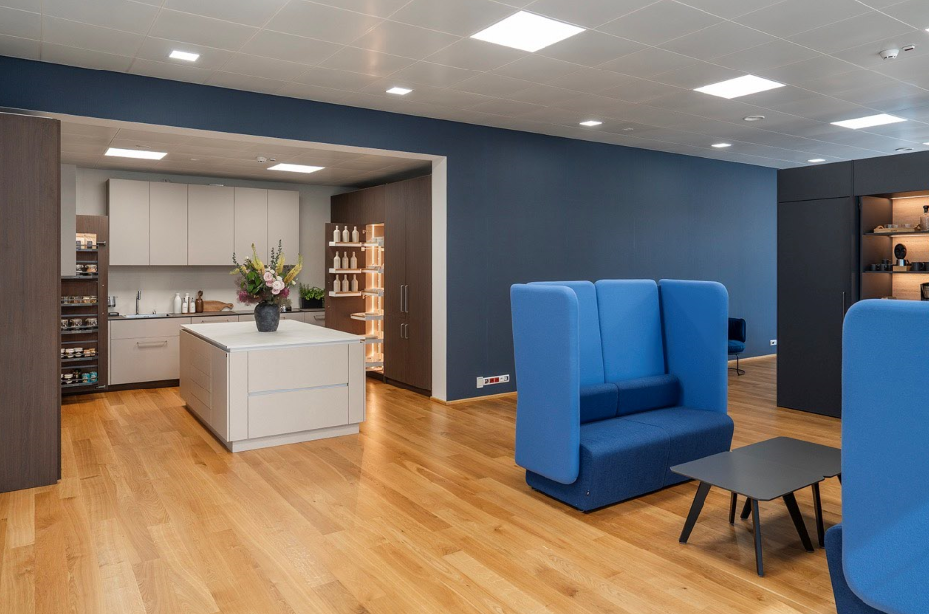 Anita Łopatka: Showroom został zaprojektowany tak, by każdy mógł z niego skorzystać w sposób, który odpowiada jego potrzebom. Klient indywidualny może przyjść do nas sam, by po prostu pootwierać szafki, wysunąć systemy cargo, przetestować mechanizmy i przekonać się, jak dane rozwiązanie działa w praktyce – jeszcze zanim trafi do jego własnej kuchni. To bezpośrednie doświadczenie jest dla nas bardzo ważne, bo żadna wizualizacja czy zdjęcie nie zastąpi dotknięcia, sprawdzenia ruchu czy oceny wygody.