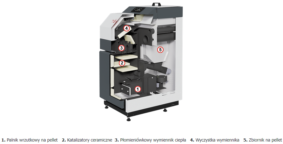 Wymiennik ciepła kotła Mini wykonano z grubej, 5-milimetrowej stali wysokiej jakości, co przekłada się na jego długowieczność i odporność na korozję. Solidna konstrukcja gwarantuje niezawodne działanie przez wiele sezonów grzewczych, nawet przy intensywnej eksploatacji. W połączeniu z ceramicznymi katalizatorami, które poprawiają jakość spalania i redukują emisję szkodliwych substancji, otrzymujemy urządzenie bezpieczne, trwałe i przyjazne dla środowiska.