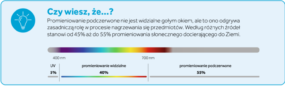 Nagrzewanie się budynków, w tym pokryć dachowych, związane jest w dużej mierze z promieniowaniem podczerwonym. Choć jest ono niewidoczne gołym okiem, stanowi od 45% do nawet 55% całkowitego promieniowania słonecznego docierającego do powierzchni Ziemi.