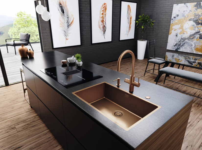 Matowa czerń to propozycja dla miłośników minimalizmu, którzy cenią prostotę i spójność aranżacji. Złoto to wybór odważny, podkreślający luksus i elegancję – idealnie współgra z marmurem czy ciemnymi blatami. Miedź dodaje wnętrzu ciepła i przytulności, przełamując chłód nowoczesnych przestrzeni. Z kolei antracyt, dzięki swojej neutralności, stanowi harmonijne dopełnienie niemal każdego stylu.