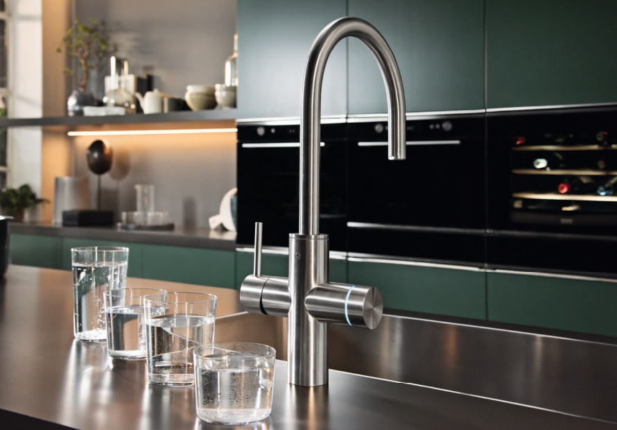 Mythos Water Hub nie jest zwykłą baterią kuchenną. To zaawansowany system zarządzania wodą, który zapewnia aż sześć jej wariantów. Użytkownik ma dostęp do klasycznej zimnej i ciepłej wody z sieci, a także czterech rodzajów wody filtrowanej: wrzątku, schłodzonej, gazowanej oraz o temperaturze pokojowej.