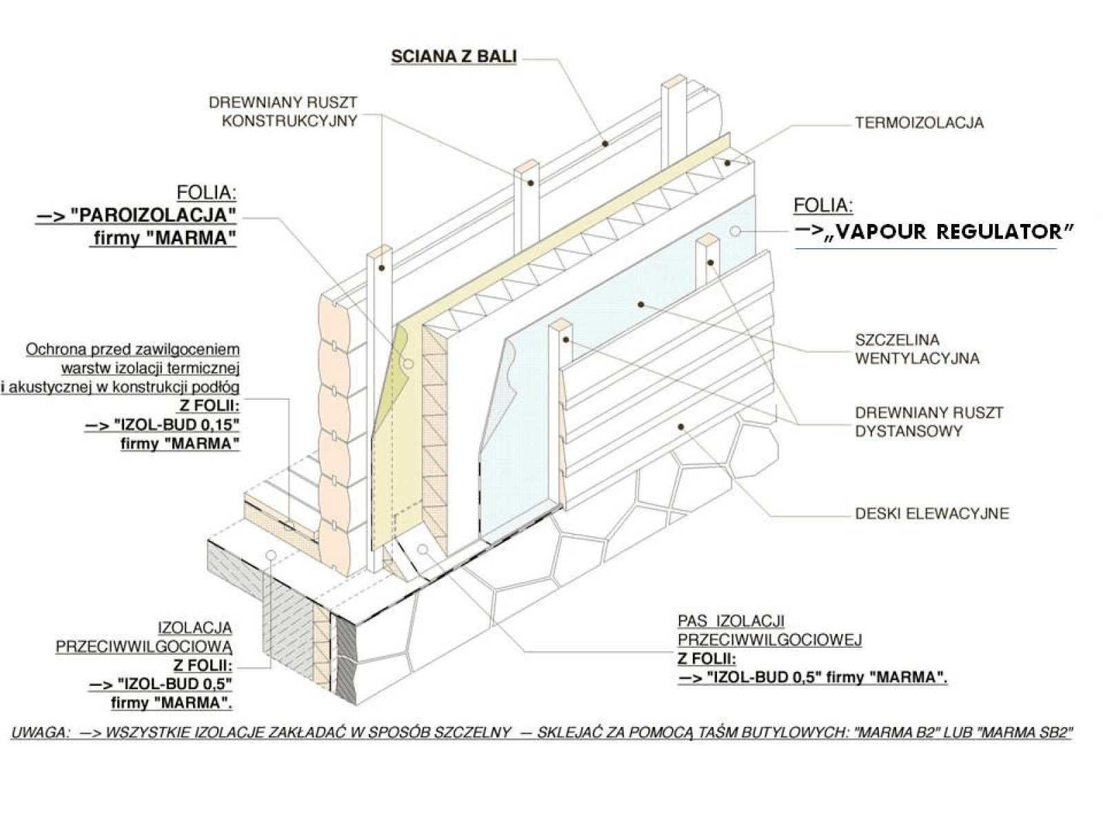 Aby folia Vapour Regulator spełniała swoje zadanie, kluczowe jest jej szczelne ułożenie. Pod elewacją musi zostać zachowana szczelina wentylacyjna o grubości minimum 2 cm.