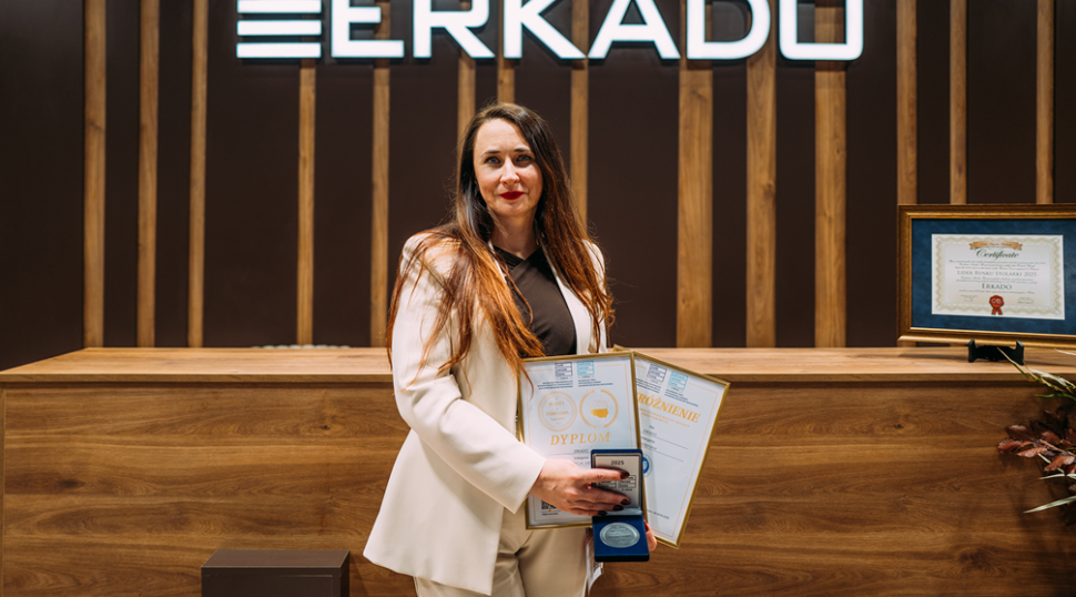 Co więcej, ERKADO otrzymało prestiżowy tytuł Lidera Rynku Stolarki 2025 w kategorii „Drzwi drewniane”, przyznawany przez Centrum Analiz Branżowych. To wyróżnienie trafia do firm osiągających najlepsze wyniki sprzedażowe, cechujących się stabilnym rozwojem i innowacyjnym podejściem do rynku.