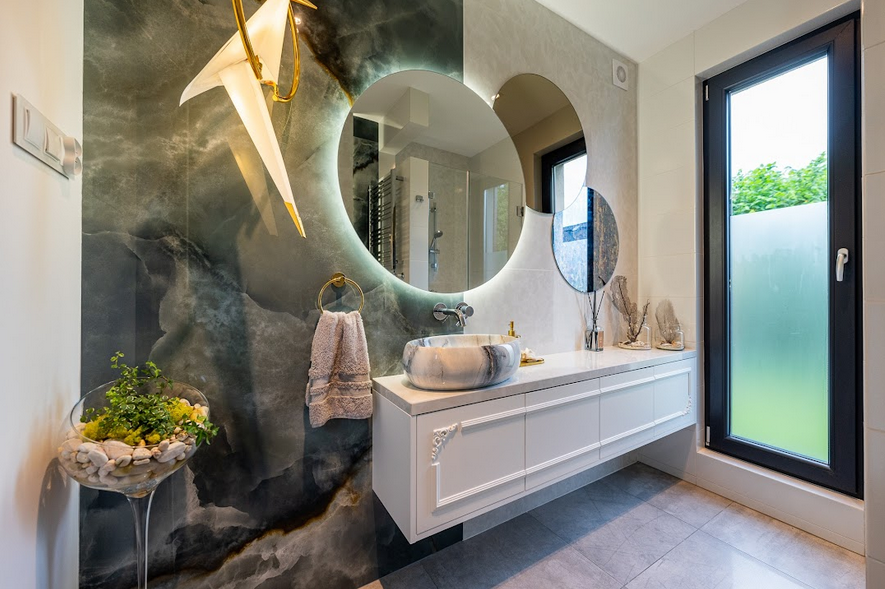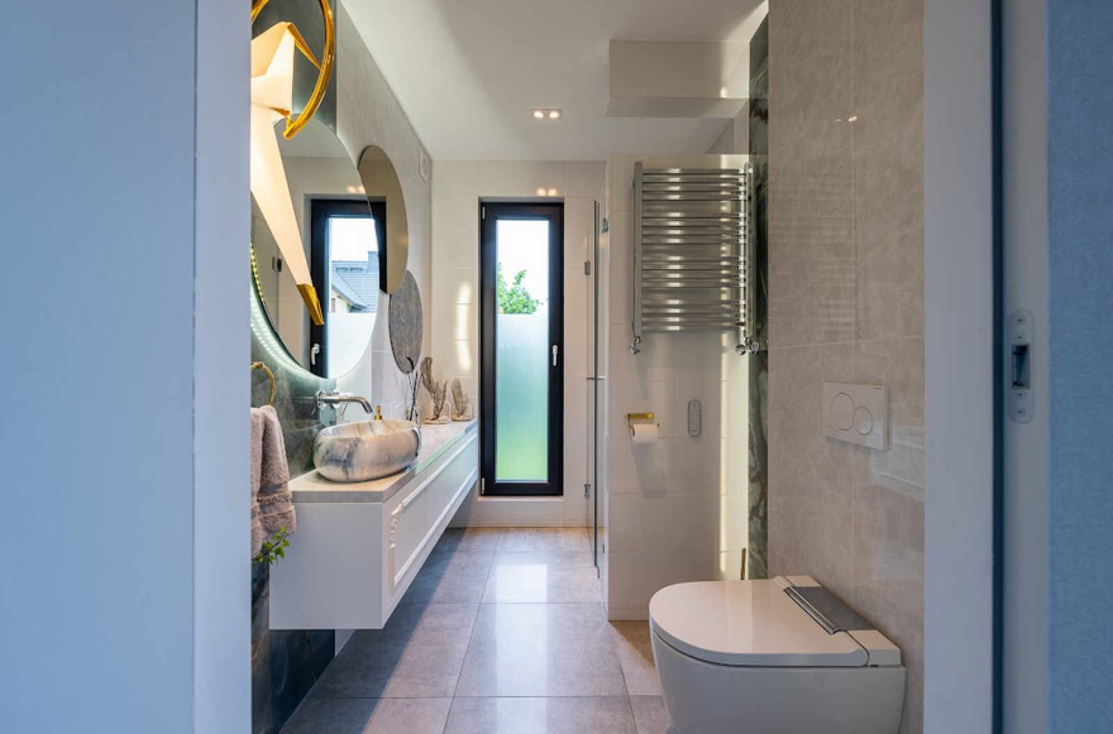 Dyskretna integracja zaawansowanych rozwiązań technicznych pozwoliła stworzyć łazienki nowoczesne, eleganckie i w pełni spójne z butikową estetyką całego apartamentu.