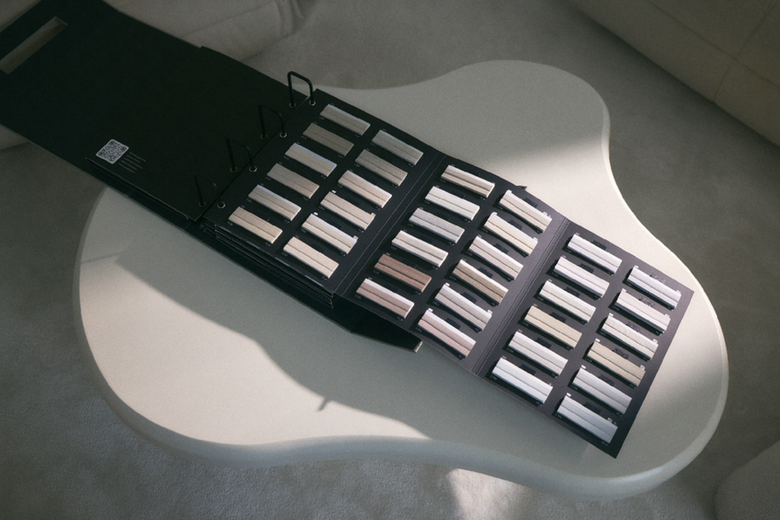 W kolekcji widać wyraźnie, że kolor ma pracować na wnętrze – nie tylko je ozdabiać. Paleta obejmuje spokojne, naturalne tony, takie jak beże, biele i szarości, które łatwo łączą się z drewnem, kamieniem i prostymi formami. Jednocześnie dostępne są mocniejsze barwy, które potrafią podnieść charakter aranżacji bez wymiany wyposażenia: głęboka zieleń, karmel czy ciemny granat.